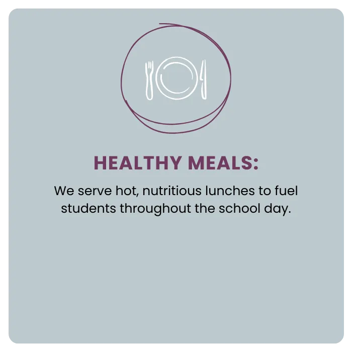 We serve hot, nutritious lunches to fuel students throughout the school day.